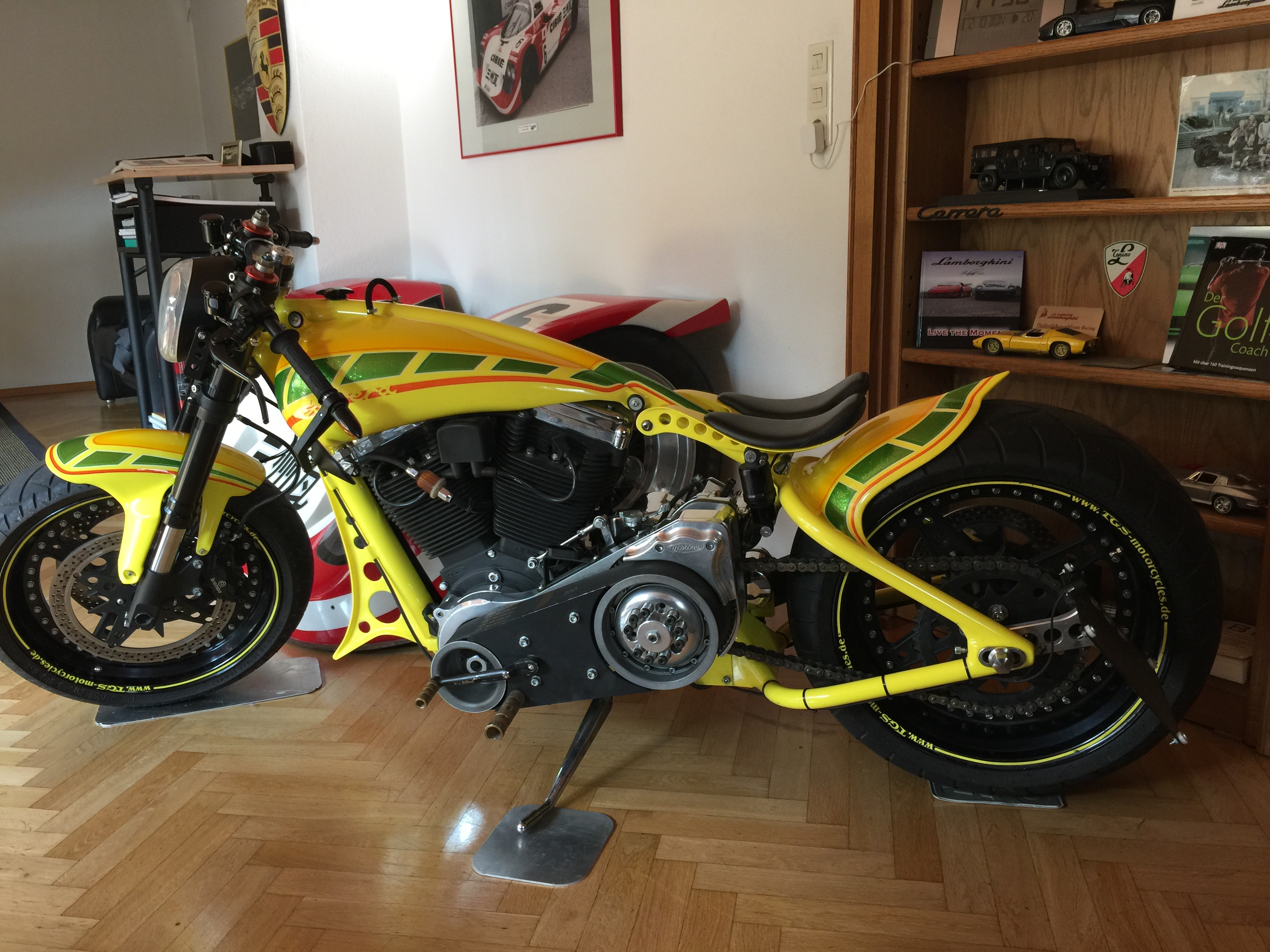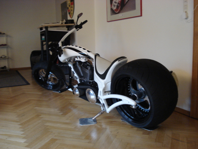 ![]() großes Bild | Felge hinten 13x18 mit der Reifengröße 360!!! Breiter geht nicht ein Showbike für den der schon alles hat. | |||